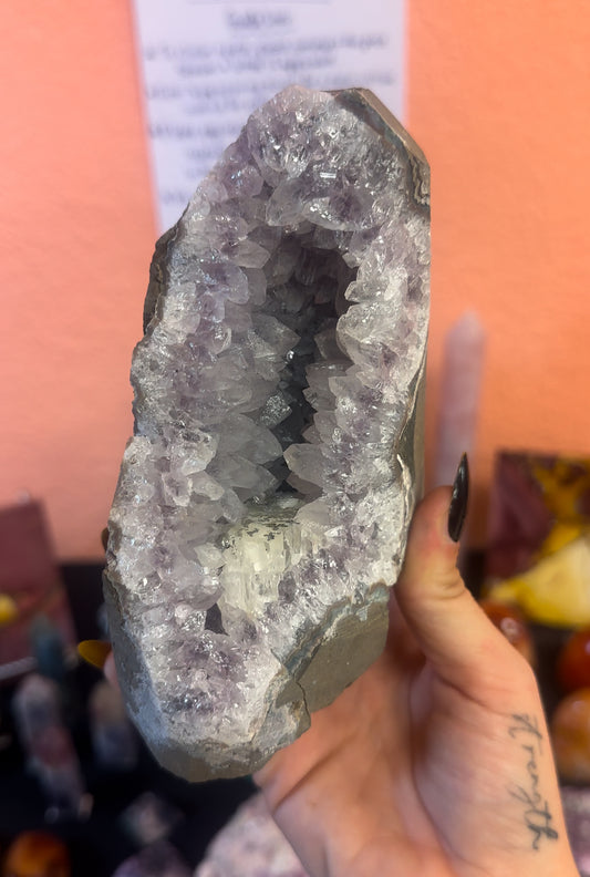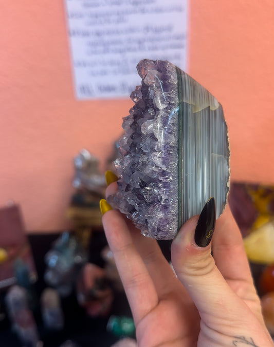 Amethyst Cutbase with Calcite Inclusion