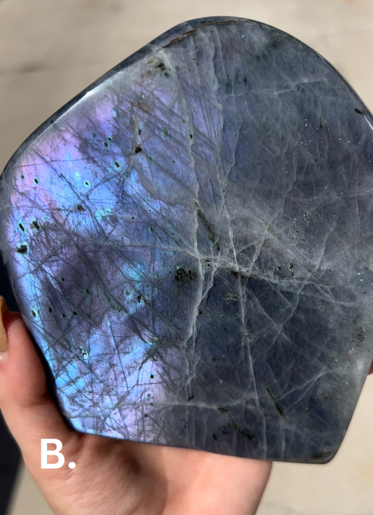 Crystals: Labradorite, Lapis Lazuli, Clear Quartz, Celestite, Apophyllite.